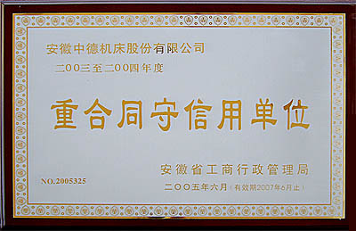 為認(rèn)真貫徹落實(shí)十六大提出的“整頓和規(guī)范市場(chǎng)經(jīng)濟(jì)秩序,健全現(xiàn)代市場(chǎng)經(jīng)濟(jì)的社會(huì)信用體系”的精神,規(guī)范市場(chǎng)經(jīng)濟(jì)秩序,推動(dòng)社會(huì)信用制度建設(shè),培養(yǎng)良好的社會(huì)信用環(huán)境,樹立誠(chéng)信為本的社會(huì)風(fēng)尚,表彰我省企業(yè)在市場(chǎng)交易中,堅(jiān)持“守約重信”的經(jīng)營(yíng)道德,弘揚(yáng)先進(jìn)的企業(yè)合同管理方式,倡導(dǎo)誠(chéng)信理念,服務(wù)經(jīng)濟(jì)建設(shè),提升企業(yè)信用等級(jí),根據(jù)《安徽省重合同守信用單位認(rèn)定暫行辦法》的規(guī)定,組成了以省工商局、省建設(shè)廳、省質(zhì)監(jiān)局、省國(guó)稅、省地稅、省消協(xié)和銀行等部門參加的安徽省重合同守信用單位評(píng)審委員會(huì),對(duì)全省申報(bào)2003-2004年度省級(jí)“重合同守信用”的單位,依照程序,嚴(yán)格評(píng)審?,F(xiàn)結(jié)果已揭曉,我公司為獲些榮譽(yù)的企業(yè)之一。