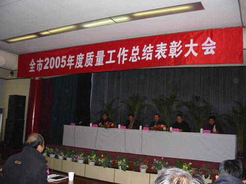 2006年1月6日下午3時(shí),馬鞍山市2005年度質(zhì)量工作總結(jié)表彰大會(huì)在市政府東二樓會(huì)議室隆重召開,會(huì)議由市行質(zhì)監(jiān)局副局長郝朝成主持,市政府劉卓軍副市長、市政協(xié)副主席孫文植等參加了本次會(huì)議,市質(zhì)監(jiān)局局長江家如作了《2005年度馬鞍山市質(zhì)量工作報(bào)告》。