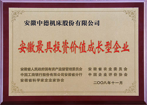 能夠進入2008年安徽最具投資價值企業(yè)的評估百強,是對企業(yè)各個方面的能力的權(quán)威肯定,因為評價結(jié)果將為各級政府決策提供參考依據(jù),為金融機構(gòu)、融資機構(gòu)的企業(yè)信貸決策提供參考依據(jù),為企業(yè)充分展示自身的成長能力、投資價值和戰(zhàn)略合作伙伴提供機會。此次進入“2008安徽最具投資價值成長型企業(yè)百強榜”對于中德機床來說,意義深遠(yuǎn)。中德將在技術(shù)創(chuàng)新,開辟廣闊市場方面做進一步的努力。