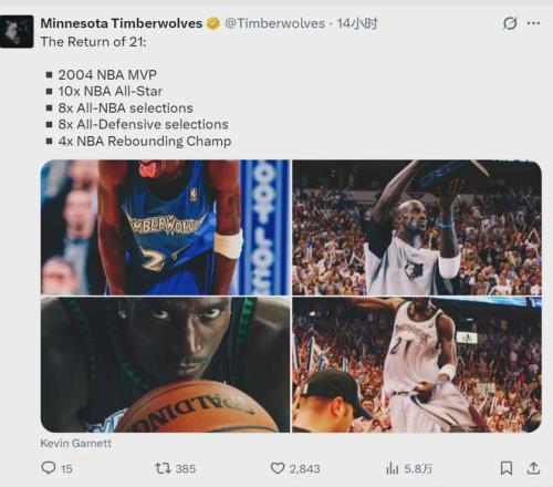 森林狼官方宣布:加內(nèi)特正式回歸球隊、進入管理層任職,他的21號球衣將被退役。不過森林狼并未透露,球衣退役的具體時間。加內(nèi)特在森林狼是什么職位?一個涵蓋商務運營、球迷互動和內(nèi)容開發(fā)的全新職位,其實就是為KG專門設置的。