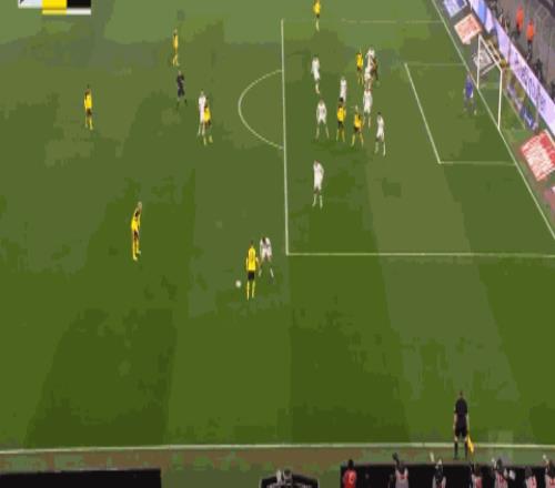 多特在國(guó)家德比輸給拜仁后,狀態(tài)還算不錯(cuò),上周末客場(chǎng)戰(zhàn)平弗賴堡連續(xù)7輪不敗。今天回到主場(chǎng)對(duì)陣門興,多特開(kāi)場(chǎng)后就很快進(jìn)入狀態(tài),僅僅9分鐘,多特中路壓上,連續(xù)的從中路轉(zhuǎn)移到右側(cè),再轉(zhuǎn)到中路,再轉(zhuǎn)到右側(cè),格羅斯禁區(qū)邊上接球回傳,聚勒禁區(qū)角上策應(yīng)斜吊門前,后點(diǎn)無(wú)人防守的布蘭特小禁區(qū)內(nèi)迎球小角度凌空掃射,皮球 應(yīng)聲入網(wǎng),多特1:0取得良好開(kāi)局。