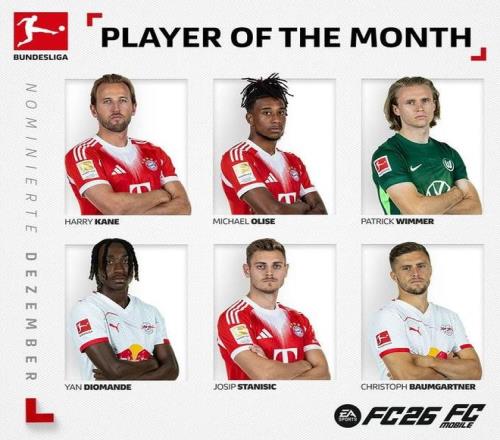 北京時(shí)間12月31日,德甲12月最佳球員候選名單公布,這6名球員為凱恩、奧利塞、維默爾、迪奧曼德、斯塔尼西奇、鮑姆加特納。