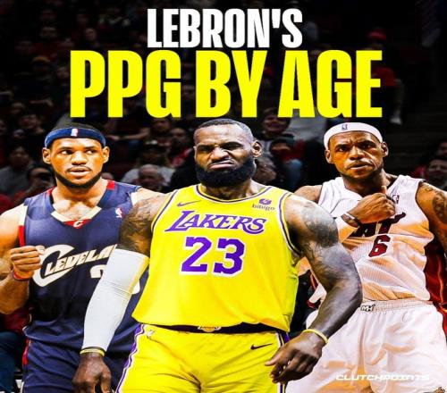 有媒體BronMuse統(tǒng)計(jì)并公布了詹姆斯從出道的18歲到41歲生日前的40歲,每個(gè)年齡段的最高得分。其中18歲最低,只有37分,當(dāng)時(shí)詹姆斯才出道。40歲還有42分。最高是29歲,61分。第二低反而在巔峰期,大概因?yàn)椴恍枰l(fā)力,34歲、39分。其他都是40分、50分這個(gè)區(qū)間。CLUTCHPOINTS統(tǒng)計(jì)的是每個(gè)年齡段的場(chǎng)均得分,18歲是20.2分,最低,21歲最高,30.2分,37歲是30.1分,40歲是24分,其他是25、26、27、28、29分。 詹姆斯在41歲生日戰(zhàn)輸了,數(shù)據(jù)也一般,但他在此前22個(gè)賽季的10次生日戰(zhàn),場(chǎng)均32.9分7.1籃板6.9助攻,投籃命中率55.5%,三分球命中率42.3%。太可怕了!這就是詹姆斯,歷史第一人詹姆斯。