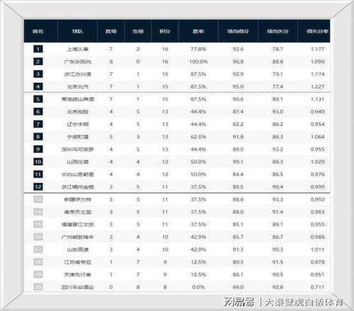 ①、7勝2負的上海男籃以先賽一場的優(yōu)勢,重新奪回榜首寶座;