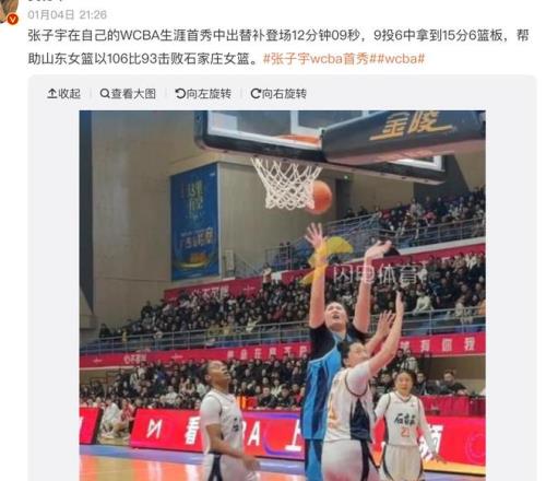 各位球迷都知道,女姚明張子宇自從出道以來,一直備受很多球迷的關注,大家也都期待她能夠在將來的國際賽場當中大殺四方。而如今她的職業(yè)生涯也不斷刷新著記錄。在新賽季WCBA比賽到來的時候,張子宇也是壓哨簽約了山東女籃,并且在最近迎來了首場比賽。