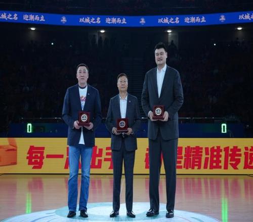 今晚,CBA第11輪一場常規(guī)賽中,上海久事男籃主場迎戰(zhàn)浙江廣廈隊(duì),最終憑借六人得分上雙的出色表現(xiàn),以99比77戰(zhàn)勝對手,喜獲七連勝。值得一提的是,1996年1月5日上海大鯊魚籃球俱樂部成立,今天的勝利也是為俱樂部三十周年生日慶生。 在備受矚目的致敬環(huán)節(jié),俱樂部為李秋平、姚明、劉煒、章文琪四位上?;@球功勛人物精心準(zhǔn)備了功勛紀(jì)念章。上海市體育局局長徐彬、久事集團(tuán)董事長過劍飛、上海市籃協(xié)會(huì)長龔德慶,分別為到場的李秋平、姚明、章文琪三位俱樂部功勛教練員、運(yùn)動(dòng)員頒發(fā)功勛紀(jì)念章。老隊(duì)長章文琪則手持一枚鐫刻著2001—2002賽季奪冠陣容全體成員簽名的紀(jì)念籃球,鄭重交到現(xiàn)任隊(duì)長王哲林手中。這不僅僅是一件穿越時(shí)空的信物,更是將“頑強(qiáng)拼搏、追求卓越”大鯊魚的精神密碼,傳遞到新一代運(yùn)動(dòng)員的手中。