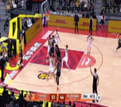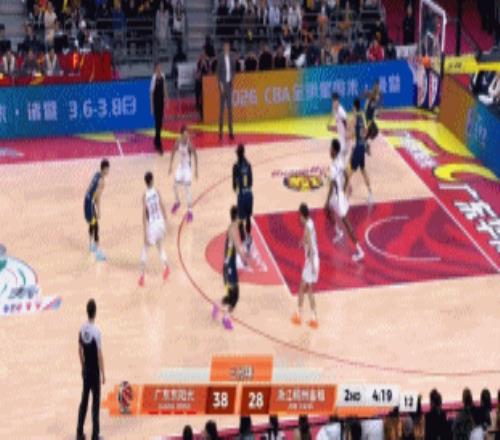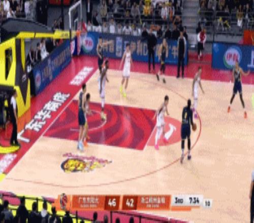 焦泊喬遭達卡里血帽,薩林杰空切輕松得手,奎因上演高難度滯空補籃連得4分;接下來焦泊喬接薩林杰內傳內助攻再上分,3分42秒徐杰輕松完成1打0上籃+飚進個人第4記三分后,廣東一波19-8領先來到62-46!