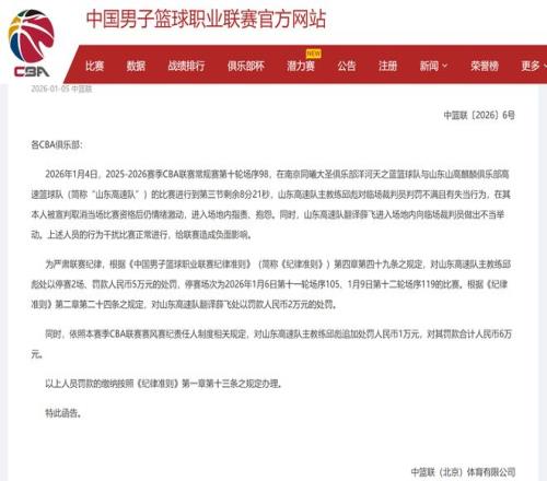 在剛剛,CBA公司給山東隊(duì)主教練邱彪開(kāi)出了一份大罰單,對(duì)他進(jìn)行了罰款60000元+停賽2場(chǎng)的處罰。同時(shí),對(duì)山東隊(duì)翻譯薛飛罰款20000元!