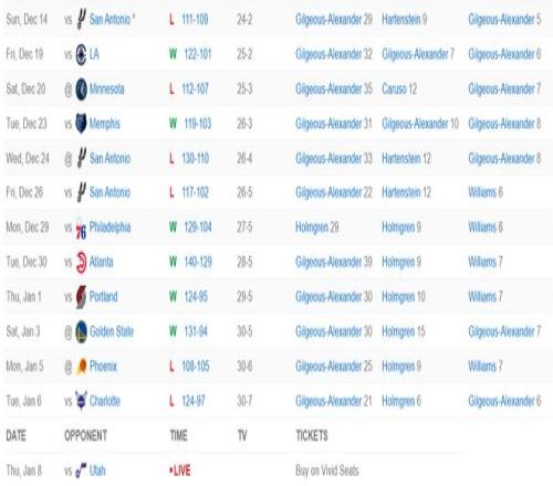 北京時(shí)間1月8日,NBA常規(guī)賽,雷霆129-125拒絕爵士逆轉(zhuǎn)避免三連敗。這場(chǎng)比賽雷霆最多時(shí)領(lǐng)先爵士20分之多,可在第二節(jié)的后半段開始雷霆的專注度就下滑,西區(qū)倒數(shù)第三的爵士是瘋狂的反撲,雷霆全隊(duì)都有一種沮喪的情緒,進(jìn)入末節(jié)爵士已經(jīng)抹平20分的差距并反超進(jìn)入決勝時(shí)刻,好在SGA命中絕平中投,加時(shí)賽SGA連拿9分拯救雷霆。