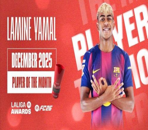 亞馬爾在11月當選西甲月度最佳球員后,12月再度獲得該項榮譽。過去一個月,他在多場比賽中扮演關(guān)鍵角色,幫助巴塞羅那在2025年最后一個月的四場比賽中全部取勝。