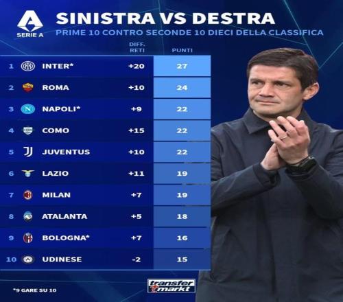 而凈勝球數據也值得一提,國米以20粒凈勝球遙遙領先,除了科莫的15球比較接近外,其他球隊都只有國米的1/2、1/3甚至1/4。國米9場比賽就拿到20粒凈勝球,場均凈勝對手2.2球,證明藍黑軍團面對弱旅基本都能輕松取勝,印象里除了客戰(zhàn)維羅納是依靠對手壓哨烏龍取勝之外,其他比賽中國米并沒有遇到太大阻力。而那不勒斯、尤文、米蘭等球隊在對陣弱旅時不只是丟球丟分贏球困難,而且就算贏球也以小勝居多!