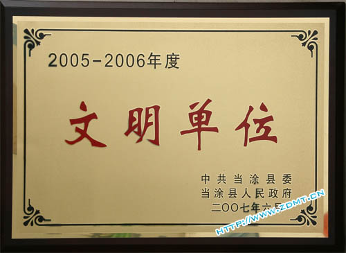 近日,我公司被中共當涂縣委、當涂縣人民政府聯(lián)合授予“當涂縣2005-2006年度縣文明單位的”光榮稱號,這標志著我公司在制度化、規(guī)范化、科學(xué)化管理方面邁上了一個新的臺階。近年來,我公司穩(wěn)抓精神文明建設(shè),努力為員工、社會營造健康、和諧的工作、生活環(huán)境,做到了物質(zhì)文明和精神文明建設(shè)雙豐收、雙促進。