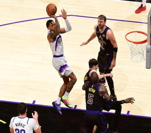 不過(guò),初登場(chǎng)的這個(gè)上半場(chǎng),詹姆斯所面對(duì)的局面并不如外界想象的那般輕松愉快。 爵士開(kāi)場(chǎng)外線手感火燙,湖人舊將米哈伊柳克先聲奪人,鹽湖城后場(chǎng)“少帥”基昂特-喬治火力全開(kāi),首節(jié)比賽結(jié)束時(shí),主場(chǎng)作戰(zhàn)的湖人在全員出戰(zhàn)的情況下反而落后9分。 好在短暫的適應(yīng)和磨合結(jié)束之后,整體實(shí)力更出色的湖人在第二節(jié)開(kāi)始找回了手感,啟動(dòng)追分模式,將分差不斷縮小。 第三節(jié),湖人更是單節(jié)凈勝爵士15分,在攻防兩端都掌控了比賽。 東契奇和里夫斯的狀態(tài)依然無(wú)需擔(dān)心。 盧卡魔法雖遲但到,即便外線投籃手感平平,東契奇也依然能依靠出色的進(jìn)攻技巧和多變的節(jié)奏打得爵士措手不及。37分10助攻5籃板4搶斷的表現(xiàn),不過(guò)是斯洛文尼亞人的常規(guī)操作罷了。