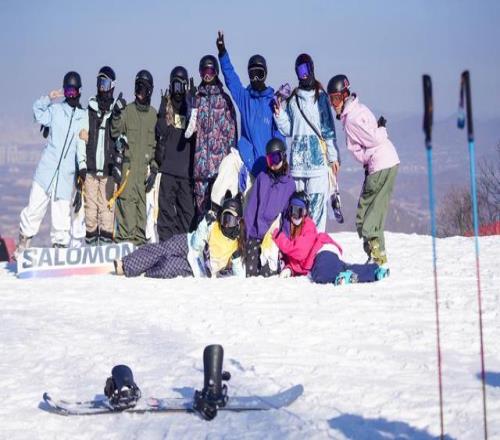 11月22日,滑雪愛好者在吉林市中旅松花湖度假區(qū)合影留念。 新華社記者 顏麟蘊(yùn) 攝