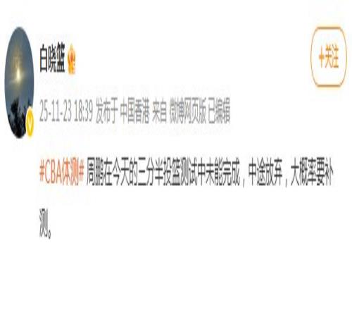 新賽季CBA體測火熱進行,根據(jù)媒體人白曉籃報道,深圳男籃老將兼主帥周鵬在三分半鐘投籃測試中,遺憾未能完成,他選擇中途放棄,因而大概率需要參加補測。