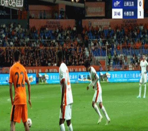 北京時間8月31日,中超第23輪,長春亞泰客場挑戰(zhàn)云南玉昆,比賽第32分鐘,長春亞泰獲得任意球機會,張華晨主罰任意球轟世界波,皮球擊中立柱后彈進球門,云南門將馬鎮(zhèn)毫無反應,亞泰1-0!