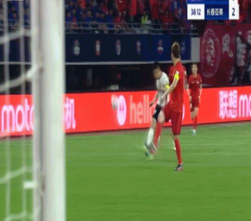 北京時間4月12日,中超聯(lián)賽第6輪,長春亞泰客場對陣梅州客家,比賽第38分鐘,譚龍在反擊中發(fā)現(xiàn)梅州客家門將郭全博站位靠前,于是在剛過半場不遠的位置選擇直接吊門,郭全博回追不及,皮球飛進球網(wǎng),亞泰2-0!