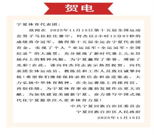 11月22日,李邑飛、張雨浦在銀川會見第十五屆全運會寧夏體育代表團和全國體育系統(tǒng)先進集體、群眾體育先進個人代表,并與大家座談交流。 “寧夏日報”微信公眾號圖 會見時,何杰和他的教練員肖麗坐在最醒目的位次,合影時亦然,可見寧夏方面的重視。 李邑飛說,體育健兒們在全運會賽場上頑強拼搏、奮勇爭先,實現(xiàn)獎牌和積分“雙突破”,展現(xiàn)出寧夏人民堅韌不拔、自信自強的獨特品格品質(zhì),體現(xiàn)了寧夏大地孕育的奮斗精神,特別是何杰勇奪馬拉松男子冠軍,充分證明寧夏也能生長出絢麗的玫瑰。 “絢麗的玫瑰”這一說法有典故。 “誰說寧夏長不出玫瑰?!我就是啊!”11月15日,當(dāng)沖過終點線后,26歲的何杰朝著人群激動地吶喊。 何杰說:“38年了,寧夏等這枚金牌等得太久。我承載著家鄉(xiāng)700多萬人的期待,我必須證明,我能做到?!?/p> 由于地理、歷史傳統(tǒng)的影響,中國各區(qū)域內(nèi)和區(qū)域間形成了豐富且多層次的區(qū)域認(rèn)同。 在省域內(nèi),各城市奮勇爭先,成就了各地市在經(jīng)濟社會各領(lǐng)域你追我趕的局面。蘇超之所以在今年夏天一舉走紅,就源于江蘇區(qū)域內(nèi)13個設(shè)區(qū)市不服輸、個頂個的奮斗精神。 在省域間,各省份既拼總量,更注重特色。全運會賽場上,有的省份拼總量,展示總量背后的經(jīng)濟實力和體育大省的氣勢;有的省份拼特色,零的突破背后是頑強不屈精神的展現(xiàn)。 稟賦各異,但奮斗精神永存。一個人、一個城市、一個省份,莫不如此。 這就是何杰此次回鄉(xiāng)之于寧夏的深意所在。 何杰今年才26歲,未來他還要代表中國在國際賽場上奮勇爭先。 那時,他就是一支盛開的“中國玫瑰”。 (作者陳良飛系澎湃新聞?wù)涡侣劜靠偙O(jiān)、港澳臺新聞部總監(jiān),高級記者)
