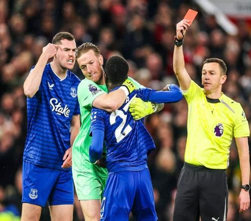 早報(bào)曼聯(lián)0比1十人埃弗頓,蓋耶內(nèi)訌掌摑隊(duì)友直紅