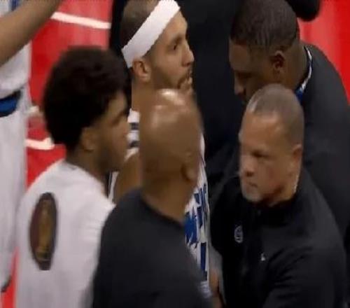 德拉蒙德想要拉拽卡特的球衣,而卡特拍掉德拉蒙德的手,德拉蒙德還做出挑釁的出圈動(dòng)作,導(dǎo)致進(jìn)一步擴(kuò)大雙方的矛盾沖突事件。兩隊(duì)在場(chǎng)上隨之發(fā)生大規(guī)模沖突事件,現(xiàn)場(chǎng)工作人員趕緊上前去制止沖突。