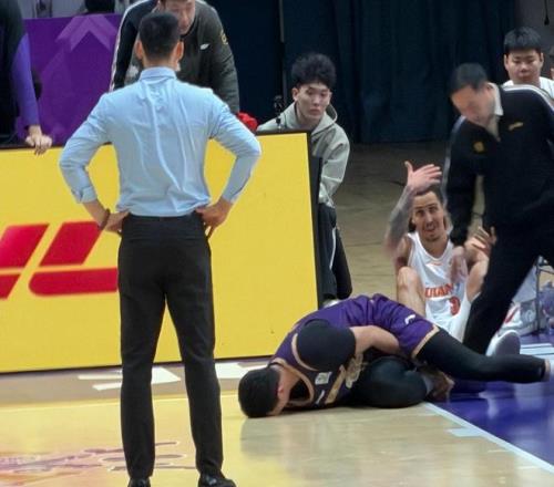 這次意外讓場(chǎng)上比賽被迫中斷了6分鐘時(shí)間,最終賴俊豪經(jīng)過(guò)隊(duì)醫(yī)現(xiàn)場(chǎng)簡(jiǎn)單治療后,馬上被抬上擔(dān)架,緊急送往醫(yī)院。