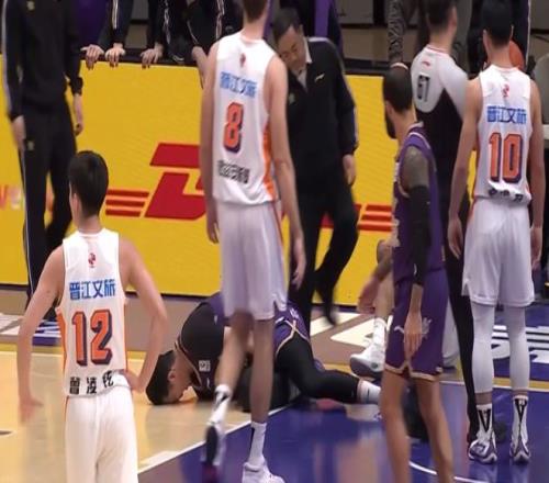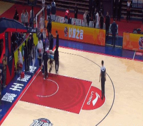 天津客場(chǎng)98-93擊敗廣州龍獅,在比賽第四節(jié)還剩5分鐘階段的一次籃下拼搶中,賴俊豪在底線附近和李祥波發(fā)生身體對(duì)抗,悲催的賴俊豪,在救球過(guò)程中身體飛出界外,腦袋直接撞到了場(chǎng)邊的廣告牌上,一度出現(xiàn)了暈厥的情況。